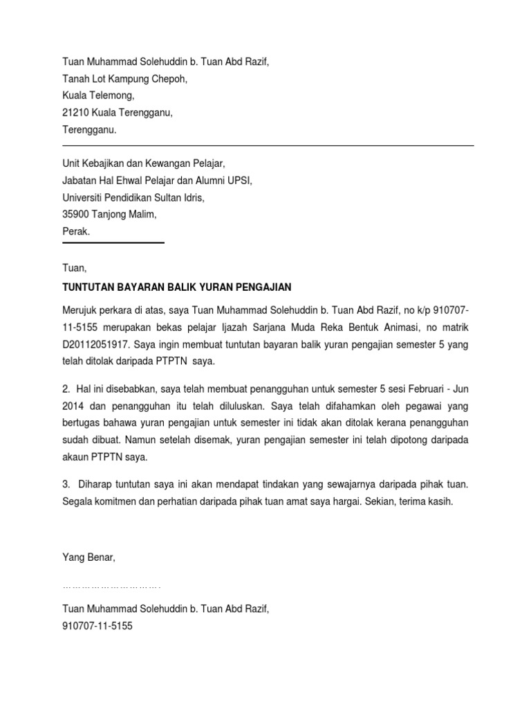 Surat Tuntutan Bayaran Balik Letter 7saudara Com